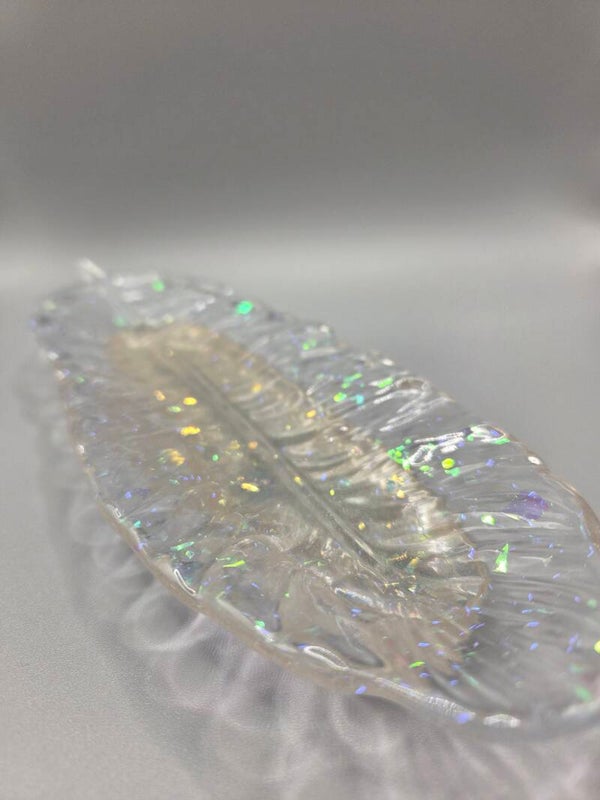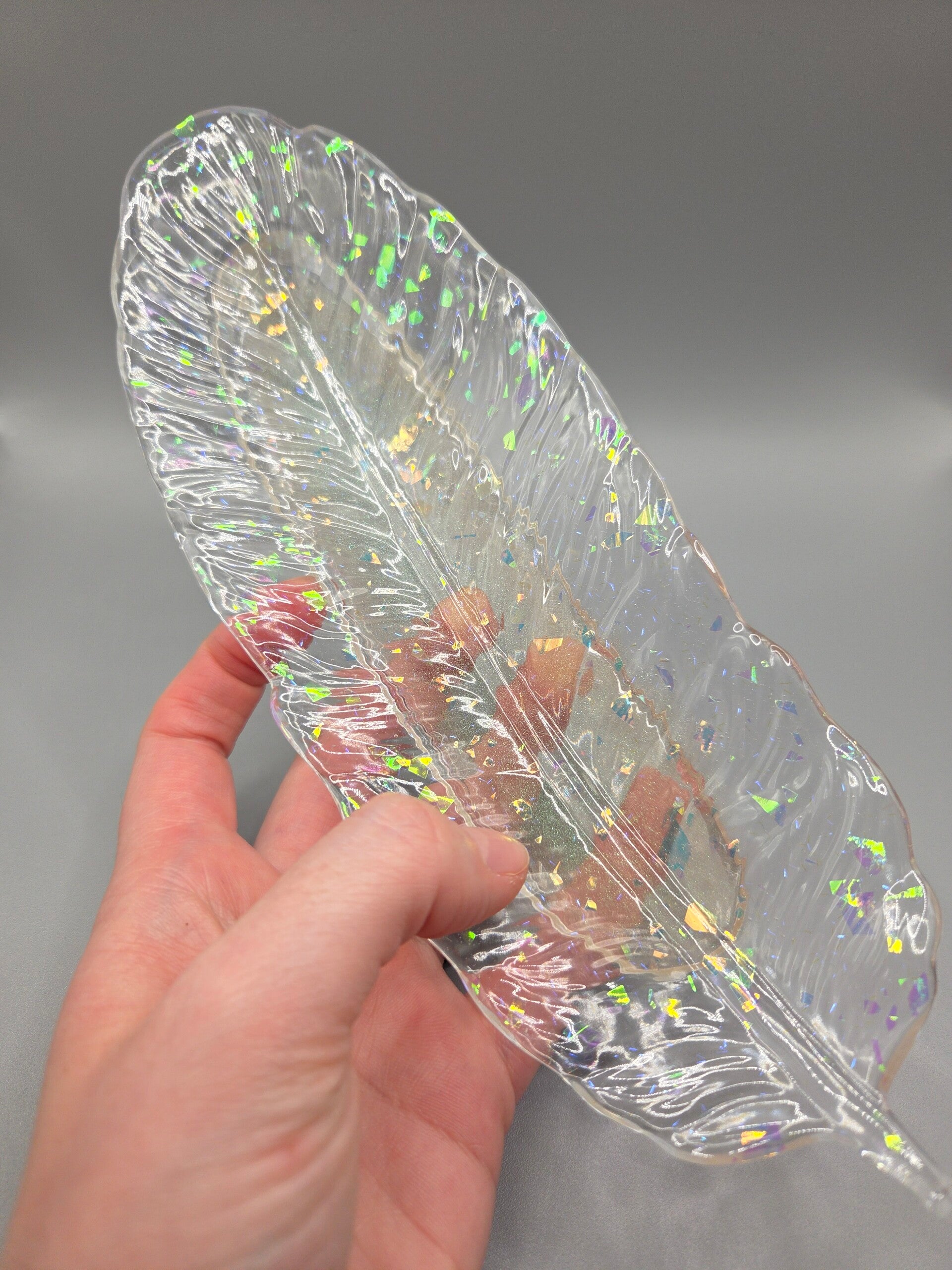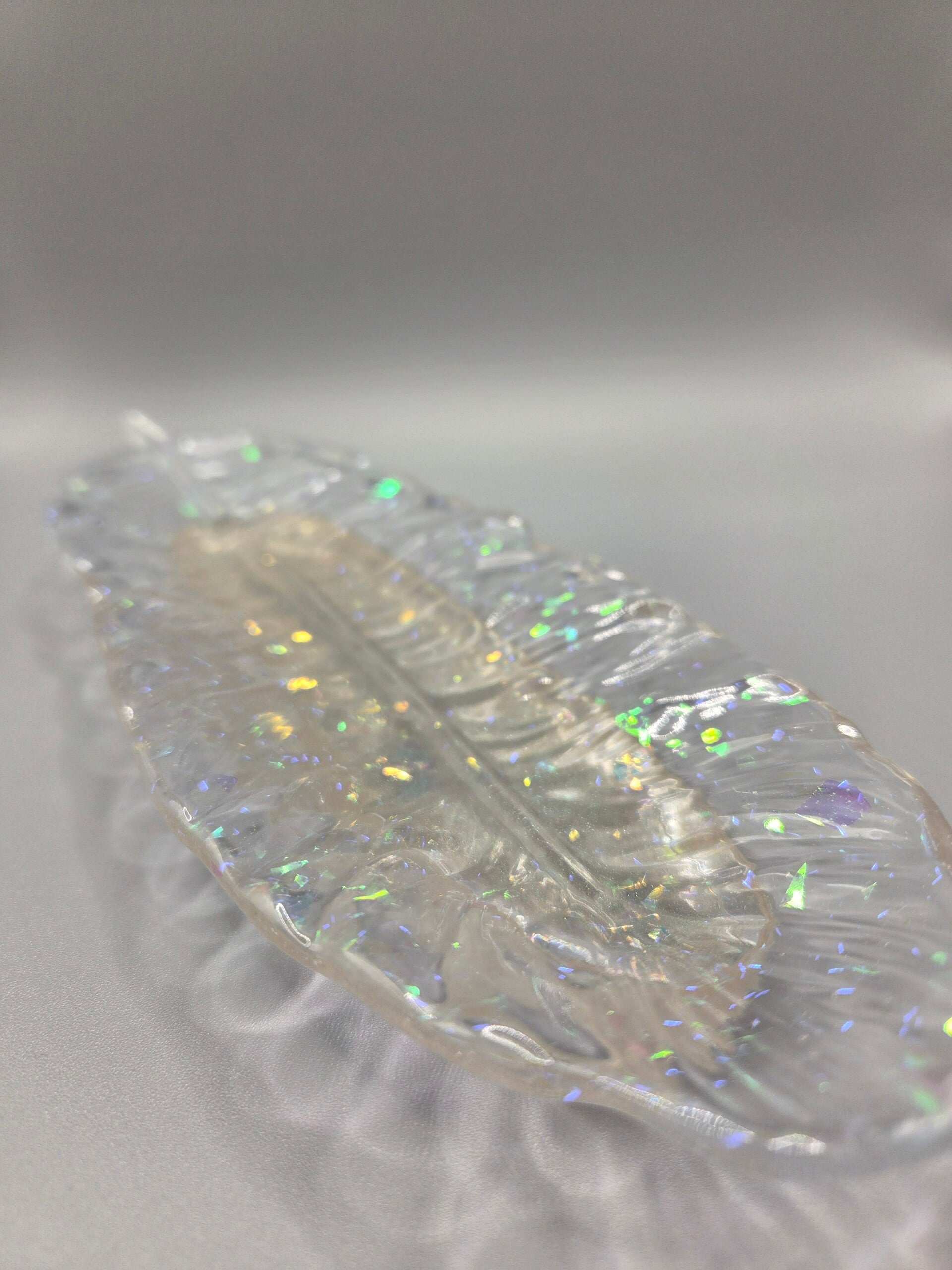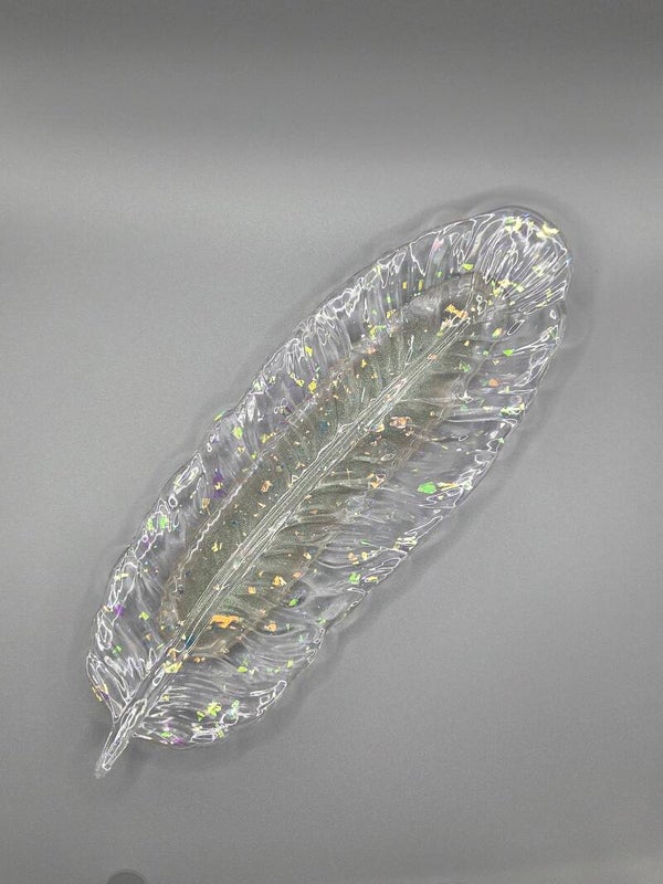 Diese elegante Feder-Schale aus Epoxidharz ist eine stilvolle und praktische Dekoration für dein Zuhause. Durch ihre filigrane Federform eignet sie sich perfekt als Schmuckablage, Schlüsselablage oder kleine Dekoschale.